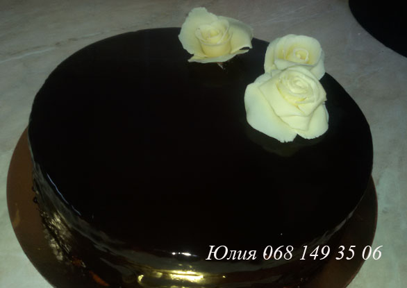 Я уже давно любуюсь прекрасными работами девочек, и вот наконец-то решилась выставить на обозрение и свои. Это был мой первый торт сделан на заказ, поэтому он мне особенно дорог. Муссовый торт, темная зеркальная глазурь и розы, слепленные мной из натурального белого шоколада...