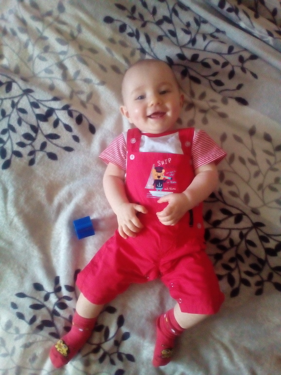 Активно ползаем, больше даже передвигается на ногах держась за кроватке, диван, кресло, стены, двери... Наверно скоро пойдёт моя мышка)) В ходунках носится не долго, в основном с утра. Спим 2 раза в день, с 11 до 12, редко до 13 часов и с 15-17..