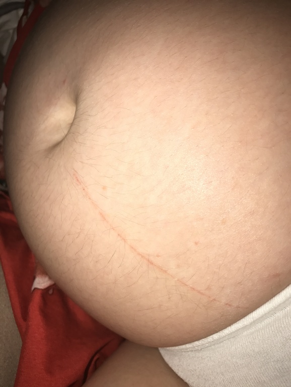 Кто знает, что это может быть? Ровная царапина на животе появилась сегодня. Ну или я только ее заметила, а точнее муж, потому что я не вижу уже ту часть живота. На пляже я не была, ничего себе не чесала. Вроде на linea nigra не похоже, так как это не потемнение кожи, а реальная ровненькая царапина, ощущается, когда провожу рукой. Кто знает, что это?