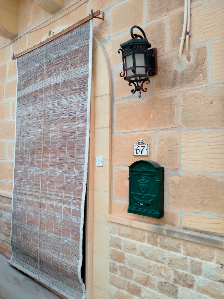 А ещё у них очень красивые и почти у всех необычные дверные ручки. Очень интересно ходить и разглядывать. Ну и ещё одной особенностью мальтийских домов я заметила вот такие циновки (или как это правильно назвать) на внешней стороне двери. Как мне объяснила одна местная жительница делается это для сохранения двери. По моему тоже очень мило. Иногда проходя мимо дома, можно услышать разговоры или шум с кухни. Из чего я делаю вывод, что двери возможно открыты, но чтобы ограничить попадание пыли в дом, эти циновки тоже опускают. То есть несколько функций у этой штуки.