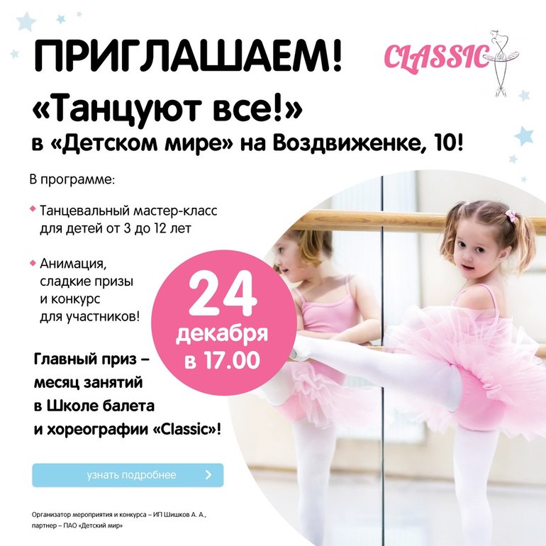 Екатерина 9 лет Москва. СЕГОДНЯ. БЕСПЛАТНЫЙ мастер-класс "Танцуют все!" по хореографии В группе #Сметушкины_подарки https://vk.com/smetushkiny_podarki обновилась информация о новых бесплатных мероприятиях https://vk.com/smetushkiny_podarki?w=wall-132727963_107 Москва 24 декабря в 17.00 БЕСПЛАТНЫЙ мастер-класс "Танцуют все!" по хореографии для детей от 3 до 12 лет Посмотрите еще 20 записей на эту тему Отменить Ответить Москва. СЕГОДНЯ. Фестиваль Shopkins Бесплатные мастер-классы для беременных Чаты Беременных Выберите чат: Январята-2026 Февралята-2026 Мартята-2026 Апрелята-2026 Майчата-2026 Июнята-2026 Июлята-2026 Августята-2026