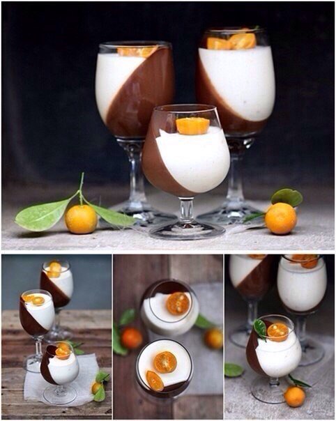 Шоколад наломайте и выложите в миску. Сливки вскипятите и залейте ими шоколад, добавьте тертую цедру и перемешайте пока шоколад не растопится. Бокалы поставьте в кастрюлю под уклоном и влейте шоколад. Таким образом поставьте кастрюлю в холодильник на 2-3 часа, чтобы схватилась форма.