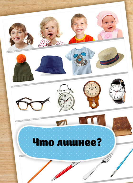 Развивающие задания для дошкольников «Что лишнее» улучшают способность ребенка находить и группировать сходные объекты