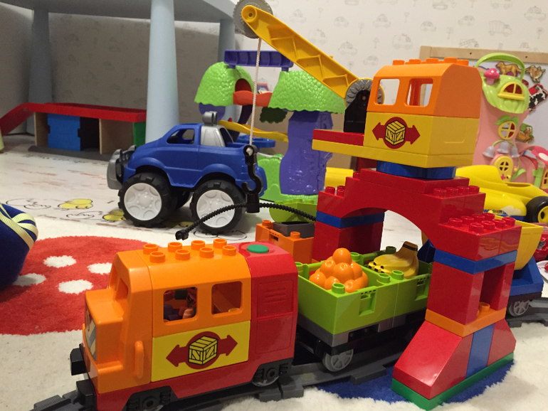 1 Всеми любимый Лего-дупло поезд, хорошая качественная долгоиграющая игрушка. Убирать конечно лего сложновато