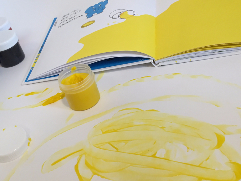 Делаем все как завещал Мимбо- Джимбо: берем чистый лист, выливаем желтую краску