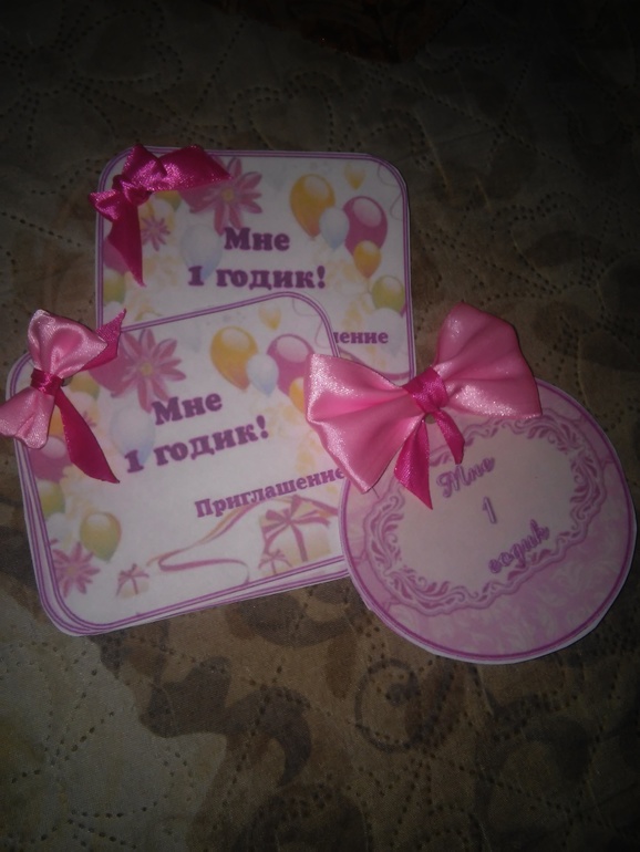 Использовала "ПаурПоинт", распечатала и украсила бантиками. В приглашениях было указанно что действует Дресс-код - джинсы и футболки( белого или розового цвета) и гости исправно выполнили этот пункт.