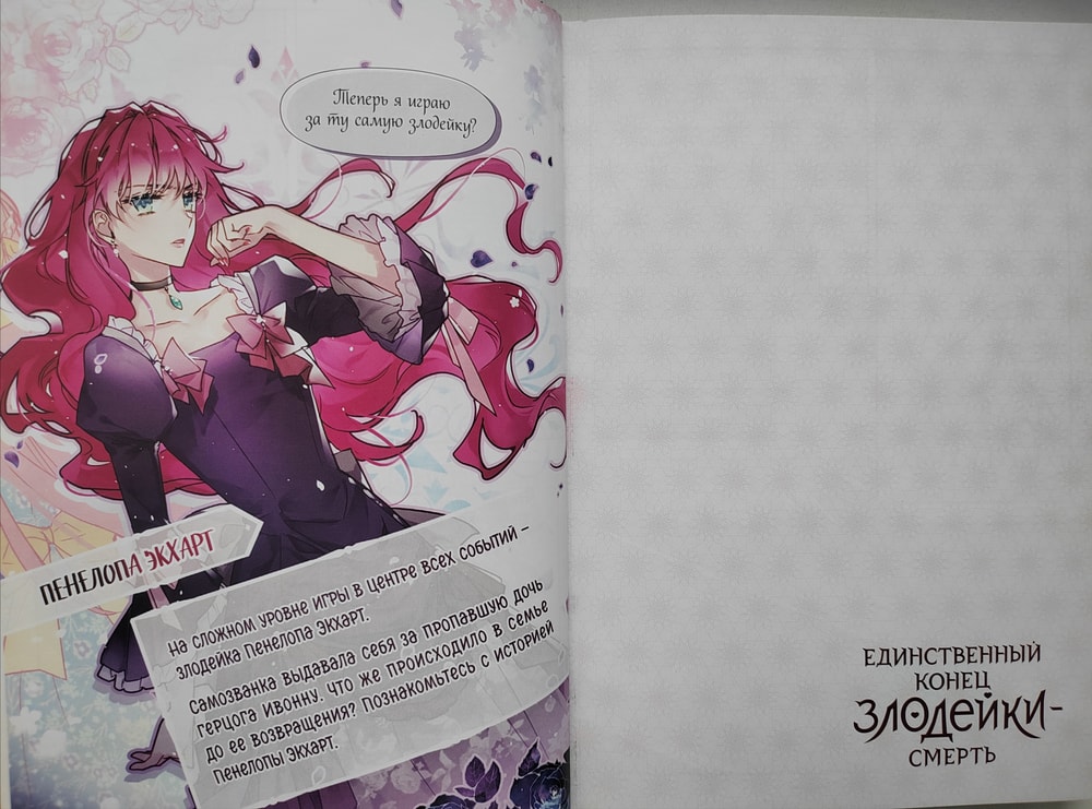 У подруг она увидела эту игру и быстро прошла простой уровень. Но вот сложный уровень ей никак не давался, она начинала все снова и снова, и погибала раз за разом. Пока вдруг не оказалась в самой игре, в роли Пенелопы Экхарт - той самой злодейки из заголовка книги. Она приемная дочь герцога, у нее два сводных брата, со всеми ними у нее сложные отношения, потому что у нее не самый простой характер.