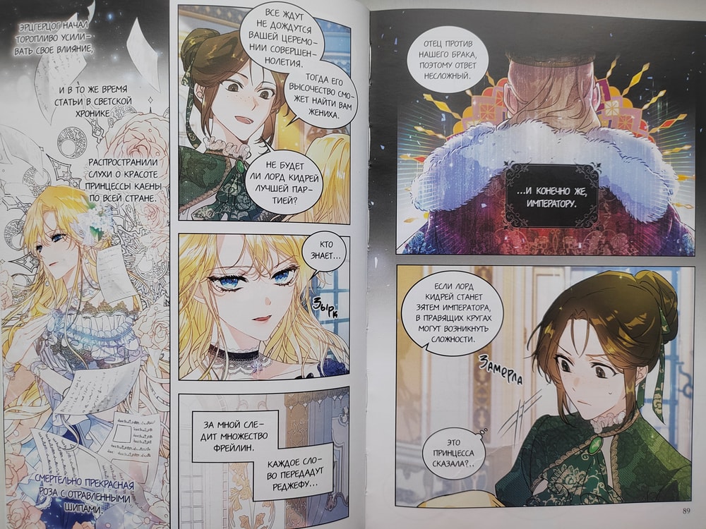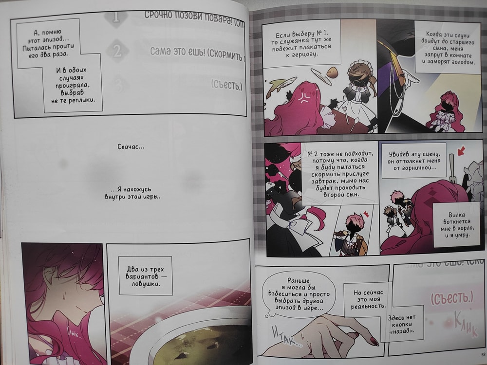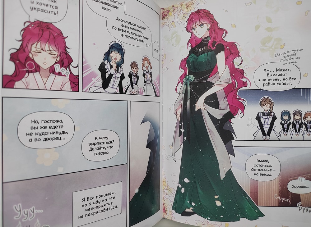 Дочь пока прочитала 3 тома. Главная героиня продолжает знакомиться с другими персонажами и потихоньку завоевывать их доверие и симпатию. Выпущено уже 6 томов, на подходе 7 и 8 том. Кроме манхвы, издательство выпустило и новеллу - текстовую версию истории - под одноименным названием, выглядит первый том вот так, а всего томов 5: