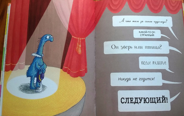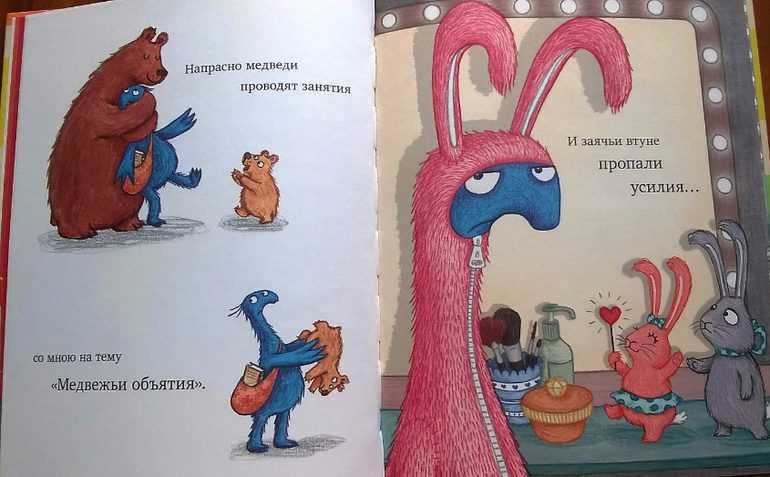 Двойственное впечатление у меня сложилось от этой книги, мне срочно нужно второе мнение - дочкино! А она пока молчит) С одной стороны, книжка приятная - и история хорошая, что надо верить в себя, и необязательно быть как все, и иллюстрации вполне милые, хотя тот же медведь мог бы быть и поразнообразнее, крупный шрифт, подойдет для первого чтения. Строчки рифмованные, это тоже большой плюс для чтения маленьким детям. Но, с другой стороны, книга, на мой взгляд, совсем необязательная, и если ее пропустить - не потеряешь ничего. Но возможно, я передумаю, когда покажу ее дочке - вдруг ей очень понравится. А пока пусть полежит в закромах Родины.