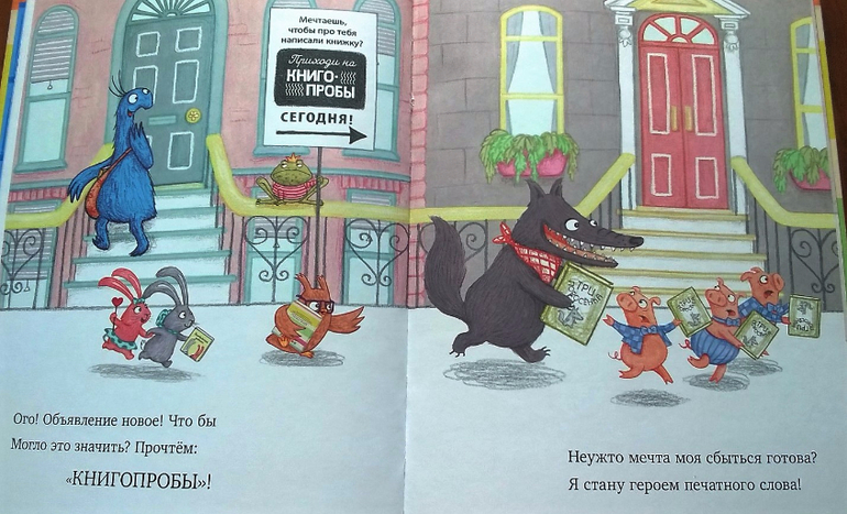 Итак, история простая - Бакстер обожает читать и мечтает сам стать героем книги. Он идет на "книгопробы", но проваливается на них, так как никто не знает, что это за зверь, а "продюсеры" на всякий случай по старинке набирают старых добрых героев детских книг - зайчиков, медвежат и прочую живность, которая кочует из книги в книгу. Что же делать Бакстеру? Неужели отказаться от мечты?