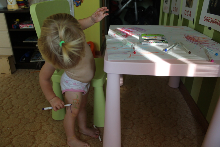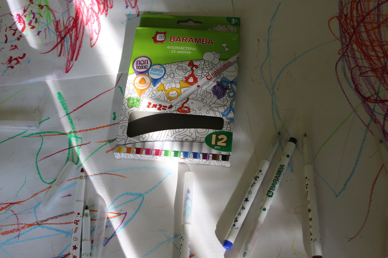 фломастеры я даю редко, в основном Софи ими рисует себя ). Но они легко отмываются, отстираются и не выдыхаются.