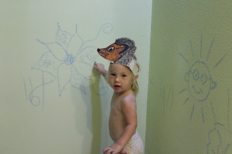 мелками на стенах если их легко отмыть, ура у нас в квартире есть такие стены.