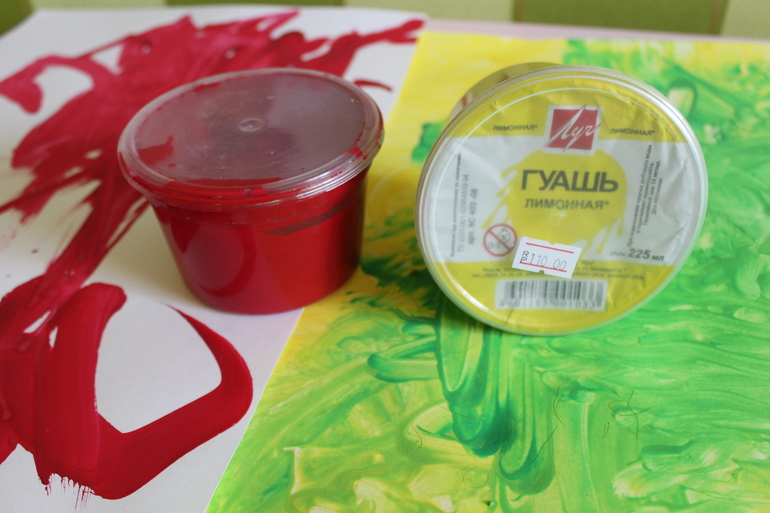 краску я беру обычную гуашь в больших банках. Так удобней и краска в них мне кажется лучше