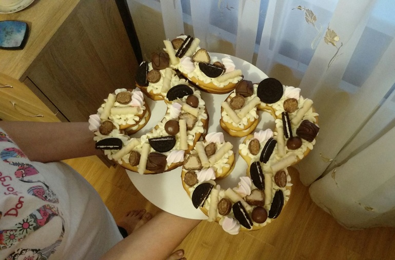 Печь тортики для своих - моё хобби. Этот тортик испекла на день рождения папе, он состоит из медовых коржей, сливочно-творожного крема и бананов, а для украшения я выбрала разные вкусняшки. Рецепт под катом