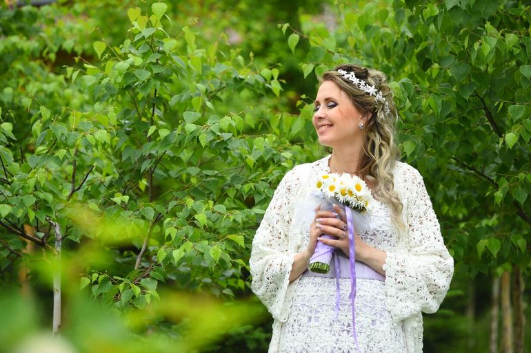 На 20+4 неделе состоялась наша свадьба: "Все как у людей". С самого утра макияж и все по плану..и ресторан до часу ночи.. тяжело стало в ресторане: к этому времени мой позвоночник решил отказаться от участия в моей жизни))) платье у нас особенное) в нем почти не видно животика))) котятки вели себя очень тихо - мне даже боязно стало. Однако после сладкого тортика напомнили о себе😄