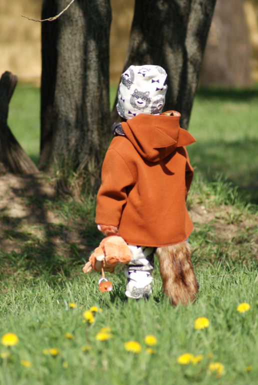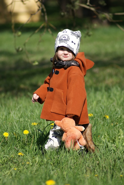 Наконец-то смогла отфотать нашу лисичку) Итак, пальто с лисьими ушками и хвостом) Ткань - пальтовая, хвост искусственный, подклад - хлопок, размер 98 (на наши 2 года есть еще запас - рукава подвернула), так что, думаю, до осени хватит, а может, и до следующей весны))) Тут, кстати еще шапка и штаны засветились - футер с начесом, размер тоже 98, у шапки - 50.