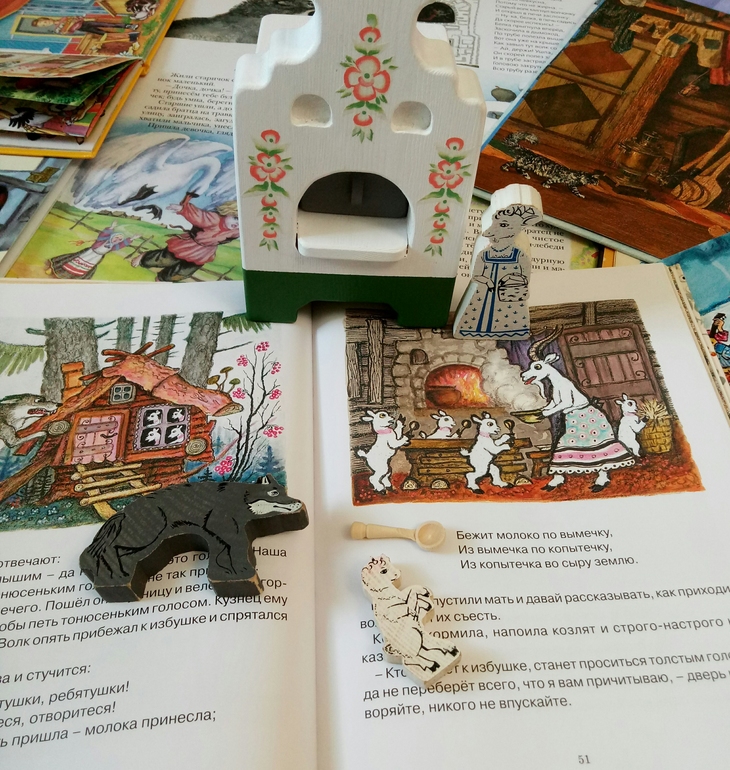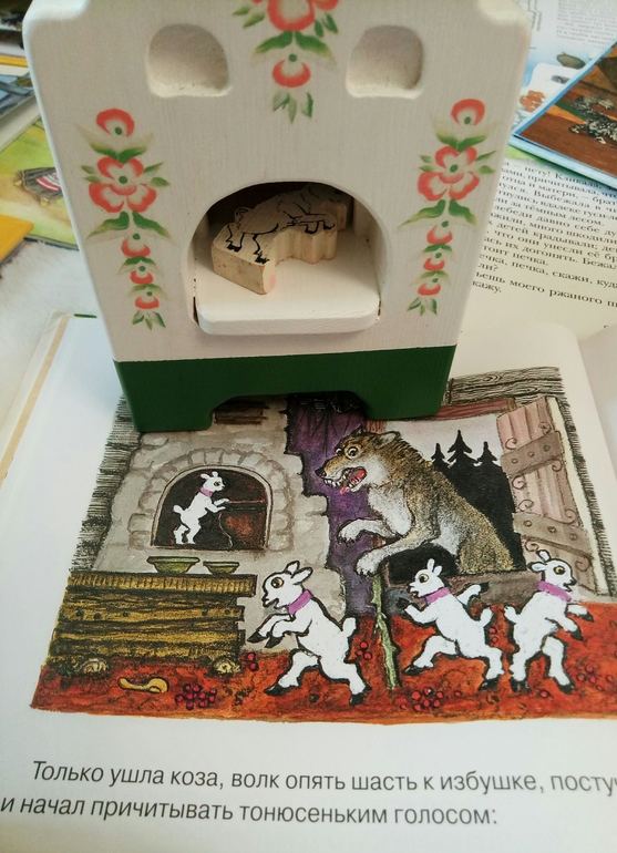 В сказке Волк и семеро козлят печка еще и спасительница, спрятала, заслонила козленка от серого волка