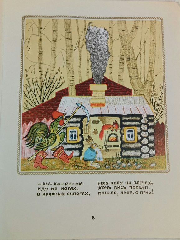 Вот петушок золотой гребешок лисицу выгнал а сам на печь и забрался)
