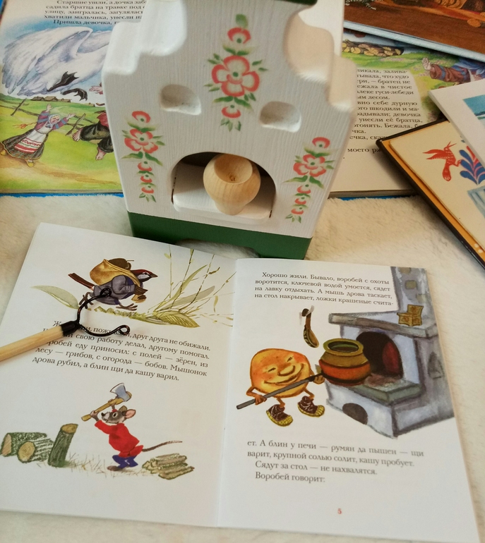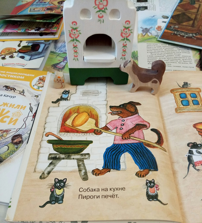 Я давно хотела печку! Беленькую, ладненькую, чтоб с чугунком и ухватом) вот не хватало в моем игрушечном хозяйстве ее.. и было несколько попыток ее купить, да все не складывалось.. но купив одну книгу, где про устройство печки написано так складно, так ладно, я поняла, что читать эту книгу надо только с живым примером перед глазами) а потом и остальные книжные печки подтянулись)