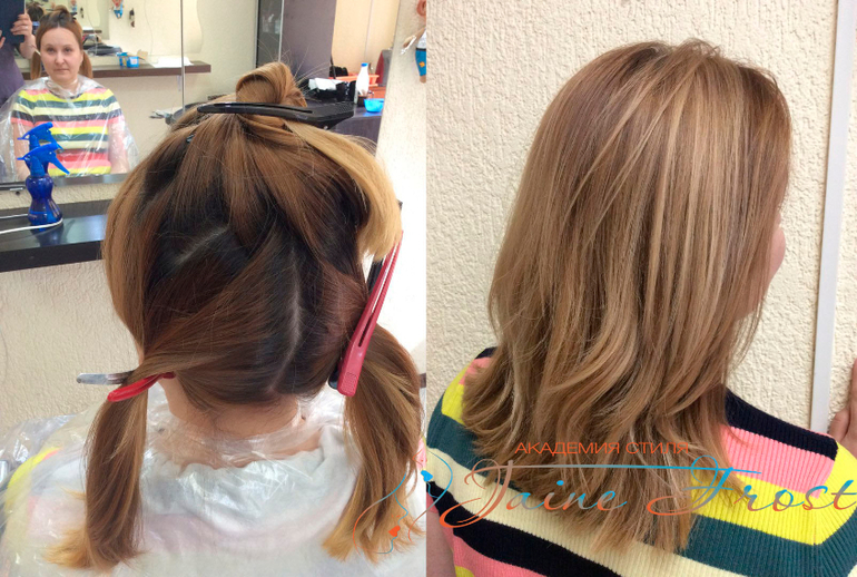 Мы с клиенткой выбрали очень нежный ,теплый вариант окрашивания, как и в прошлый раз.