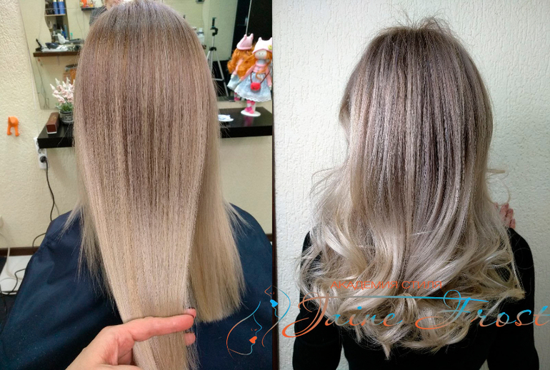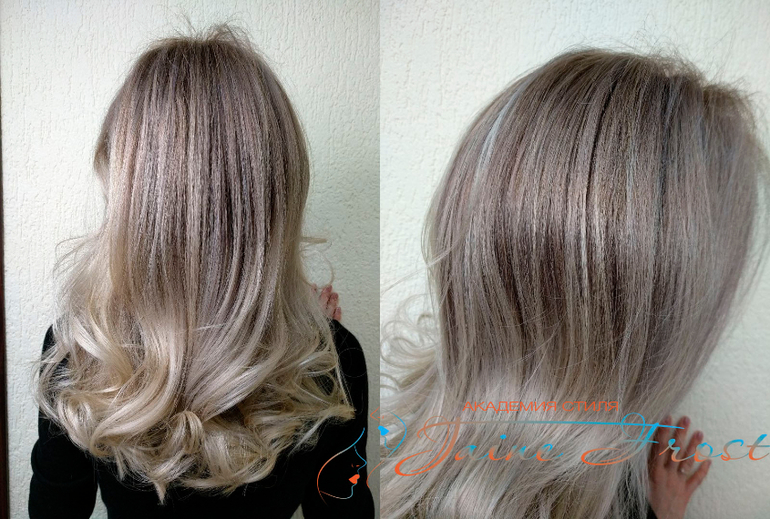 Данное окрашивание позволяет убить сразу несколько зайцев: избавиться от желтизны, придать полотну красивый рисунок и плавную растяжку цвета после окрашивания.