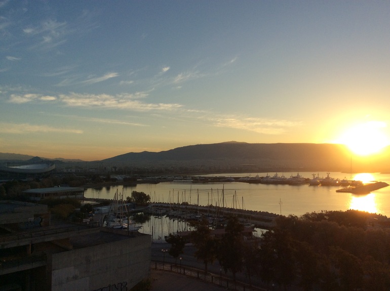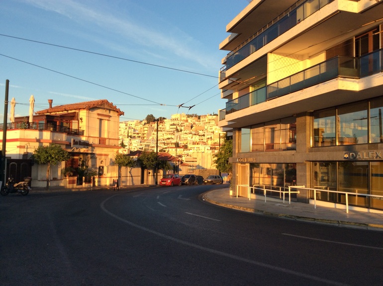 Вместо того,чтобы ехать по центру Пиреа,но быстрее,выбираю побережье,потому что там рассвет и море и птицы и свежесть утреннего ветра