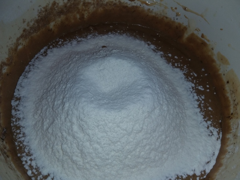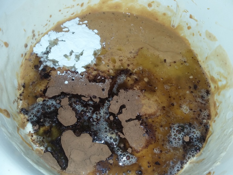 Всыпать 1 ст.л. какао и 1 ч.л. соды\разрыхлителя: