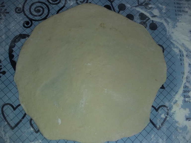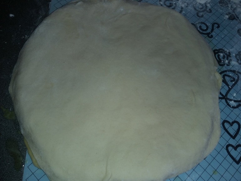 Сложить все промасленные круги друг на друга. Верхний не смазывать. Легонько раскатать скалкой: