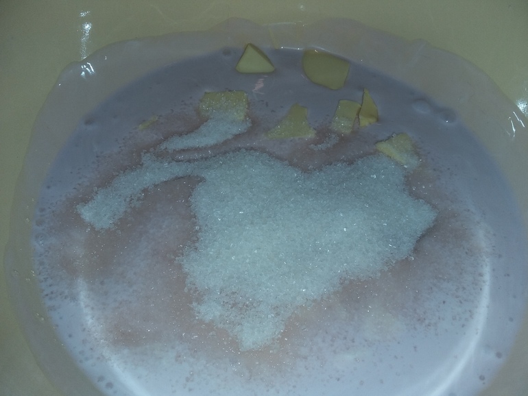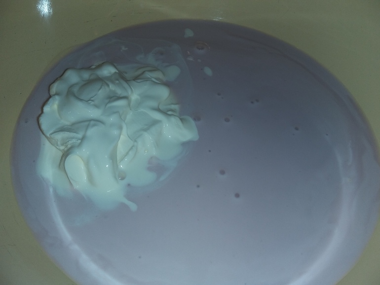 400 мл йогурта (у меня земляничный был в этот раз) и 2 ст.л. сметаны нагреть до 40 градусов: