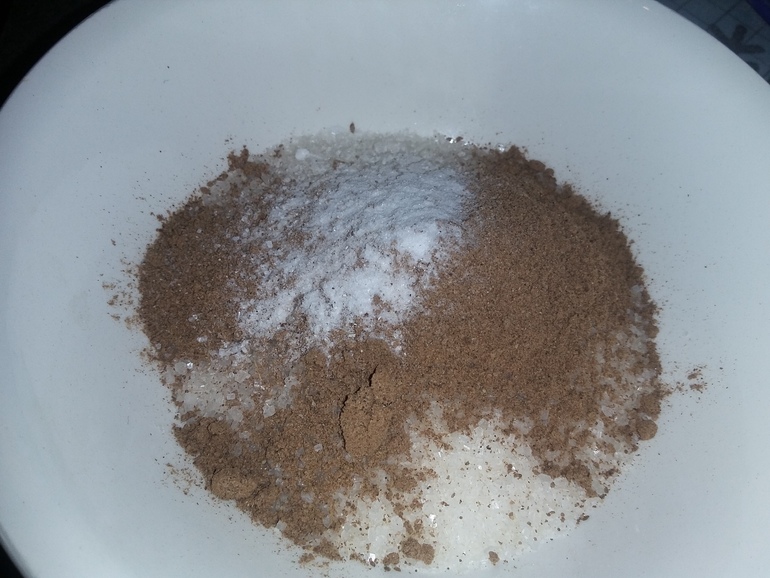 Смешать 4 ст.л. коричневого сахара, щепотку ванилина и 1 ст.л. корицы: