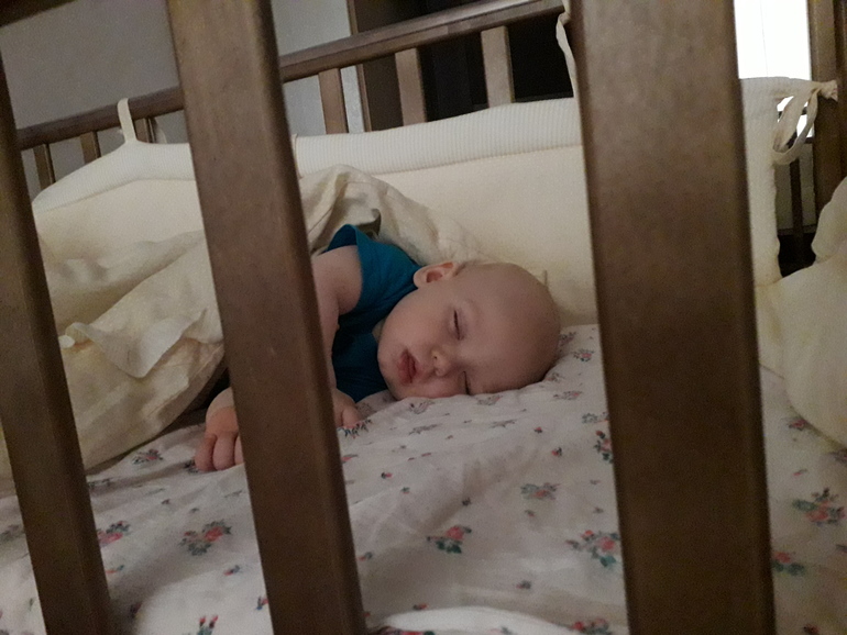 Спим 2 раза, второй сон сдвигается все позднее, думаю через пару месяцев скинет его, времени на свои дела станет меньше😉