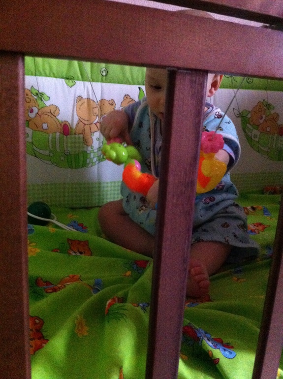 ничего не делали, он с четверенек давно садится, но одной рукой придерживался, а тут решил отпустить руку))