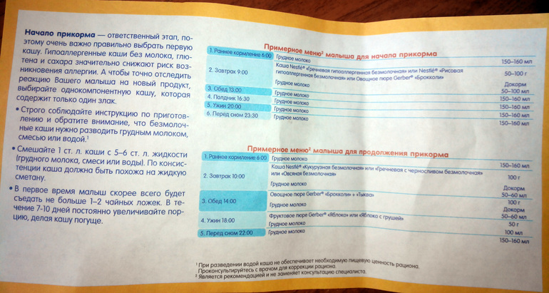 На вопрос о прикорме, сказала если молока достаточно, то можно еще подождать, но если я хочу вводить прикорм, то вот мне памятка: