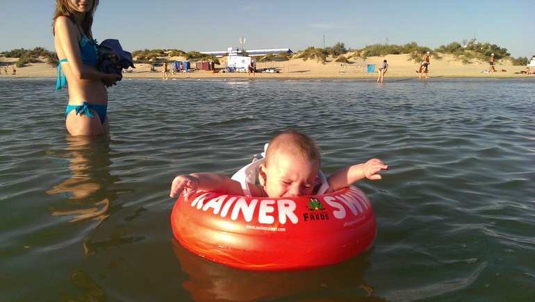 8.30 - завтрак. Далее с 9 до 11 на пляж. Димка вел себя замечательно, лежал себе под тентом, вызывая восхищение прохожих)))