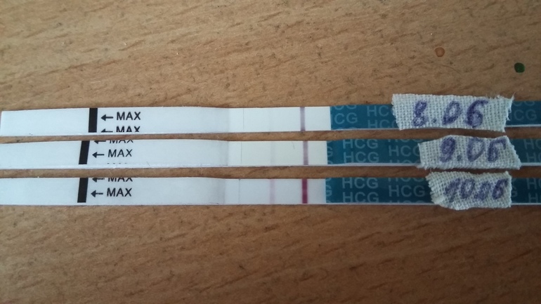 А началось все с того, что утром 8 июня мне приснился сон, что я делаю кучу тестов и все они +! Проснулась и пошла в туалет сделать уже настоящий. Была сонная и не прождав и 2 мин выкинула тест. Уже собиралась уйти на работу, как приспичило залесть в мусорку и... увидела елееее заметную вторую полоску. До задержки еще почти неделя, решила, что показалось и ушла на работу. Работа у меня новая и испытательный срок. Мне начальница говорит, прошу не планировать б хотя бы год, я думаю, а если я уже б? Разволновалась и на обеде побежала за тестом - положительный. Уже более видная полосочка. Я еще не поняла, что произошло))) жалко только, что придется работу другую искать...