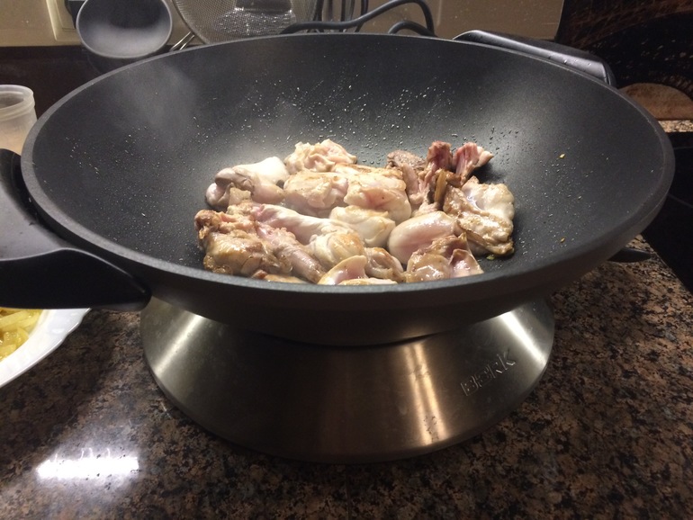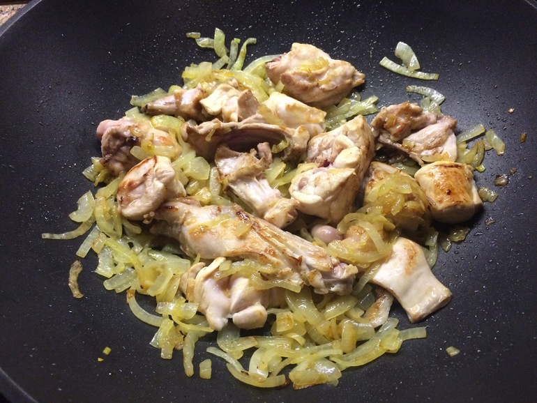 3. Обжариваем кролика порезанного на небольшие кусочки.
