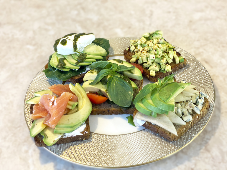 Авокадо тост с грушей, сыром Дор Блю и грецким орехом