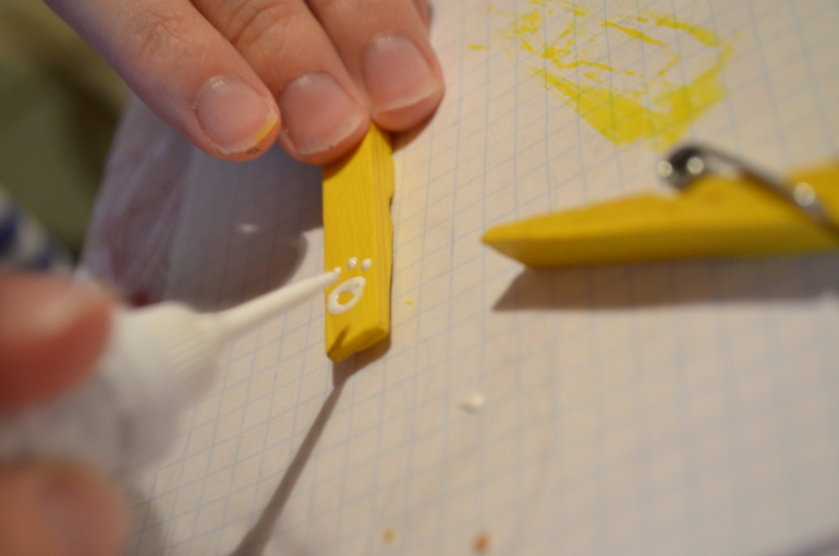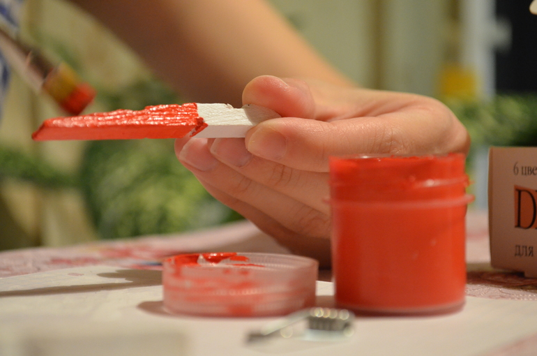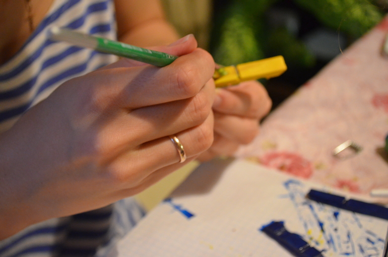 Если цвет получился не насыщенным и плохо лег(как у меня с зеленым,не ложился на прищепку совсем)нанесите второй слой,после полного высыхания первого.