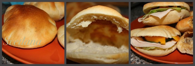 Пита это такой хлеб с кармашком. Начинку можно любую, у меня обычная бутербродная начинка и начинка а-ля жульен. Очень удобно брать с собой, а можно есть без начинки, как хлеб.