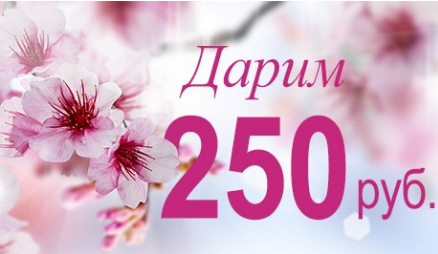 Компания дарит 250 руб. для оплаты заказов до 19 марта! тем кто не успел разместить заказ в периоде №4/2017, На счет объемной скидки всех партнёров, которые разместили свой последний заказ в периоде №3/2017, начисляется денежный приз - 250 рублей для оплаты заказов по каталогу №4/2017! Искренне ваша,Команда Faberlic