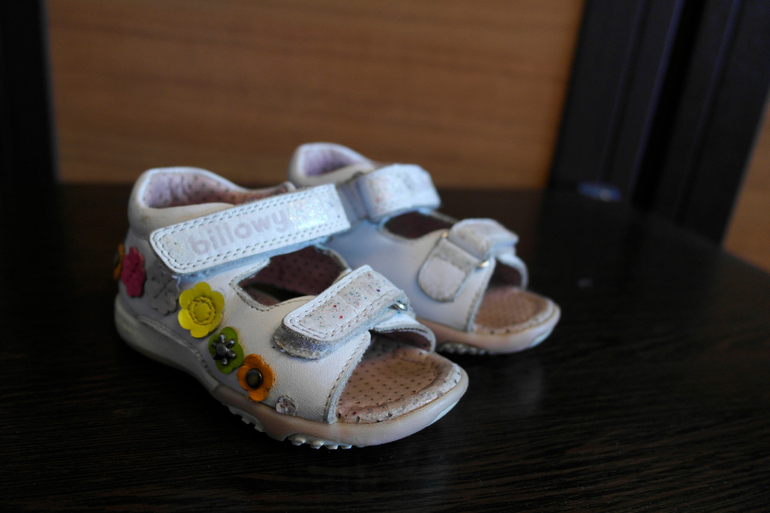 Босоножки пр-во Испания кожа на коже, активно б/у, есть потертости со всех сторон. Внутри кожа перфорированная, дышащая. Все цело, липучки хорошие. Кожа достаточно мягкая. Подошва хорошо гнется. Для песочницы отличный вариант.