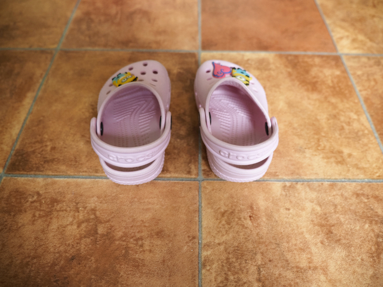 Кроксы 12 см по стельке. Это точный размер до начала сгиба на пятке. Продаются с джибитсами. Ездили в них на речку и на море. Удобные, с ножки не слетают.