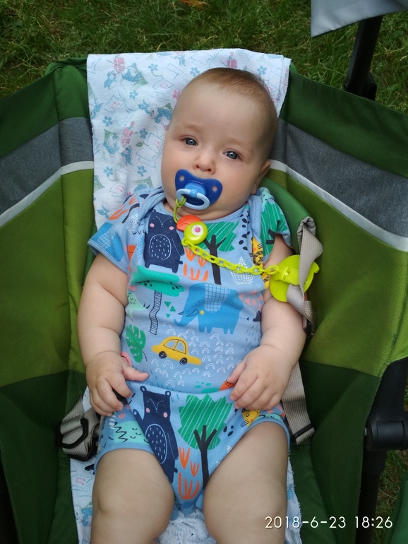 Прошёл курс кальция на физио терапии для тазобедренных суставов. Теперь на очереди массаж. В 4 мес. и 9 дней вылезло два зуба.