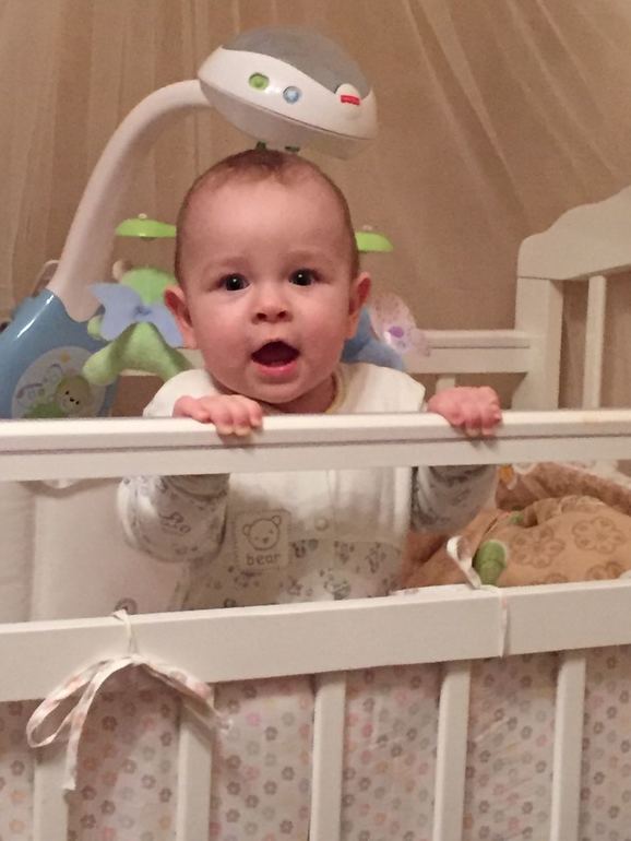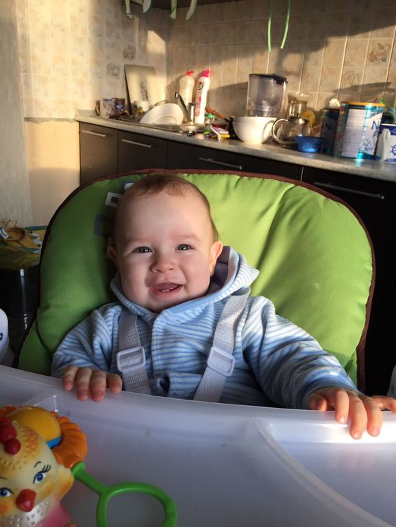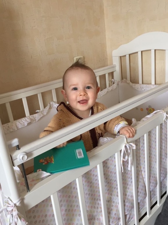 Маленькому котику 9 месяцев!! Даже не верится! Парень в 7, 5 мес начал вставать, в 8 и одну неделю наконец- то сел! Через недельку после вставания начал ходить вдоль спинки дивана и по своей кроватке. Сейчас уже ходит, держась одной рукой, второй при этом может брать какой-либо предмет. Пытается уже отпускать ручки. Проблема в том, что я до сих пор боюсь спускать малыша на пол и ходит он по кроватке и по дивану. Взял моду отталкиваться и падать, пружинит и смеётся. А на полу можно же и головку разбить(. Как- то у нас небезопасно - кругом углы и острые края. Спускаю на пол - маленький шкодник сразу бежит к телевизору и пытается уронить, либо хватает сетевой фильтр. В- общем, сразу в самую гущу событий. Когда на диване пытается штору оторвать. . Спускаю его ненадолго, но прям ползу за ним и страховую со всех сторон. И то уже умудрился стукнуть ушко(. Ушки знатные у нас, муж смеётся, что вместо подушки безопасности есть ушко безопасности)). Зато головку не стукнул. просыпается то в 6, тов 5.. если спит до 7 - праздник! Кушает смесь, потом в 9-30 съедает порцию каши. Кашки кушает гречневую, рисовую, мультизлаковую, овсяную, кукурузную. . В обед кушает овощи, любит морковь, тыкву. Раньше любил и брокколи и цветную капусту, а сейчас прям проблема их дать. Фрукты ест хорошо - яблоко, грущу, банан, персик и всякие миксы. Мясо дать проблема, уже и сама готовила и покупали разные и кролика, и индейку, и телятину и разных производителей - все выплёвывается с отвращением. Может, время пока не пришло. Вечером кушает кашку. На ночь даю смесь, немножко попьёт и засыпает. Пока отдыхали бабушка его приучила к укачиванием, сейчас мучение - на два дневных сна качаю по 20 минут - руки отваливаются (. Зато вечером носится до последнего и сам вырубается возле нас, потом аккуратно переносим в кроватку. Имеем 6 зубов - 4 верхних и два нижних. И продолжаем чесать, видимо, скоро ещё будут. Если капризничает - то только на зубы и чуть чуть перед сном. В- остальном, веселый и жизнерадостный, любит маму, папу и бабушку. Научился целоваться, так это мило! Обнимает и вжимается в нос личиком, все зубки об маму вытрет!)))) сладкий мой мальчик! Любим его очень . Начал произносить слоги - Мамама, папапа, бабаба и эгегей!))) мамама реже всего говорит. Когда говорит папапа муж счастлив! Вообще, Ваня папин сын, папа приходит с работы - малыш сразу начинает смеяться и ручки к нему тянуть. Любит кататься у папы на плечах, вцепляется в волосы как маленькая обезьянка!)) до маминых волос тоже только дай добраться, скоро я облысею такими темпами😏. Любит петь - если слышит песенки сразу начинает подпевать))). Любит протяжные песни - вальсы или народные, где можно вдоволь поааакать!))) днём спит два раза - в 10 утра засыпает и спит час - полтора. Второй раз днём примерно часов с 3 до 5. На ночь засыпает около 10. Ночью просыпается один раз на перекус, но частенько просыпается просто так - надо подойти и дать соску, или покачать. Не высыпаюсь вообще((. Когда мы ездили отдыхать, спал с бабушкой. Может, из- за этого просыпается - привык, что кто- то рядом. Переехали мы в прогулочный блок коляски, какой- то он кривой косой((. У нас лонекс парилла. Вот не знаю что и делать. Привыкать или новую покупать. В 8,5 мес были у педиатра- вес был 8300, рост 69. Сделали третий пентаксим, перенесли как всегда хорошо! Во время укола не пикнул - мужичок!!! Зато как мама бумажку из ру