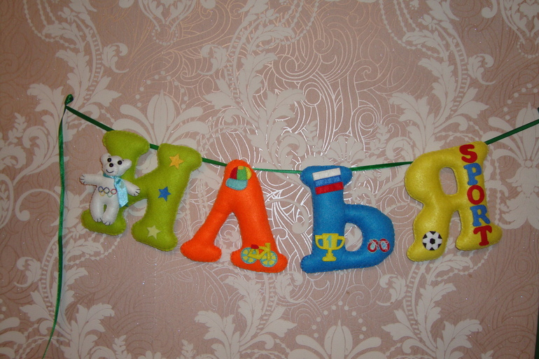 Всем доброго дня. Решала сшить имя в стиле спорт , думала как сделать так чтоб было не сильно наляписто. И в итоге что вышло. Олимпийский мишка тоже есть
