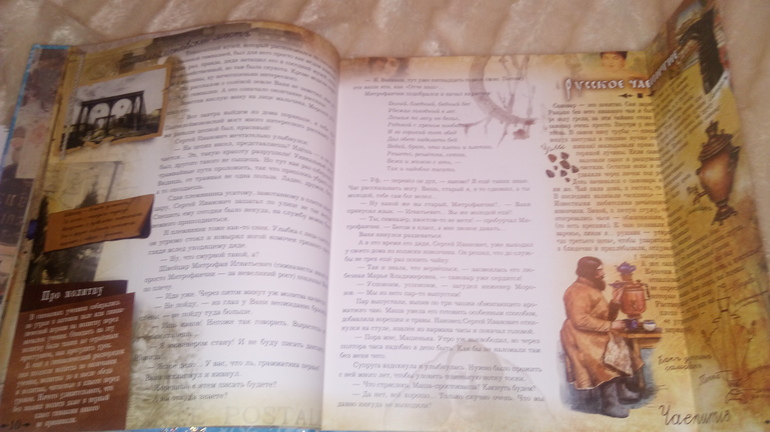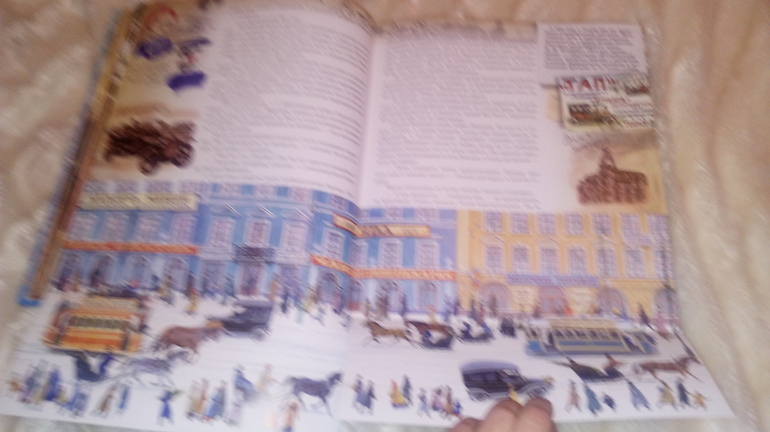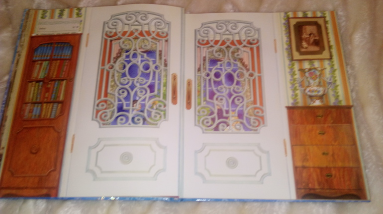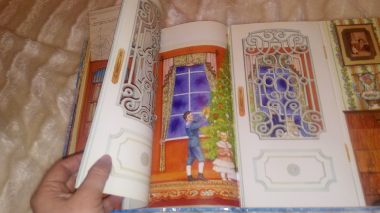 Несколько страниц интерактивные, с выдвижными ящиками, открывающееся двери, часы, которые крутятся, отрывной календарь и много другого. Муж раньше долго работал в издательском бизнесе сказал, что по оформлению книга реально стоит таких денег. Слава Богу купила ее не за полную цену))))
