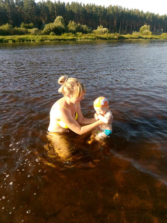 Первый раз купались вот на днях, жара такая была, очень понравилось Илье,не испугался, умничка.