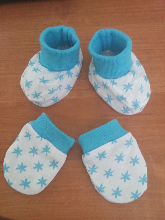 - три фланелевых и две ситцевых пеленки плюс рукавички и носочки