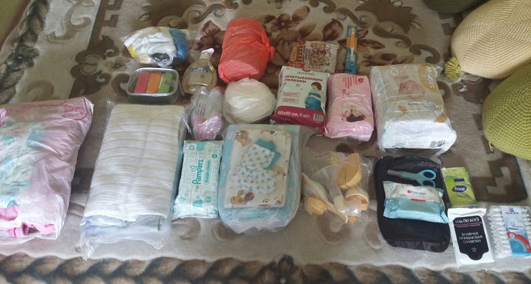 - одежка для малыша (две тонких и одна толстая шапочка, две распашонки с закрытыми ручками, слипик один на всякий случай)