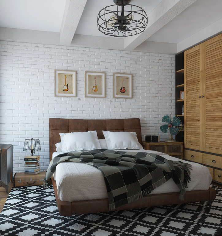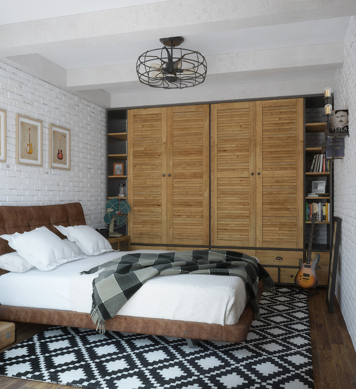 Хозяева московских апартаментов очень радушны и любят своих гостей, поэтому выделили для них отдельную комнату. По стилистике она является продолжением дизайна интерьера всего дома: индустриальный лофт в лучших традициях! Гостевая комната получилась очень уютной и приветливой к ее обитателям!